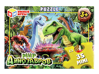 Мир динозавров. Пазлы в коробке 35 деталей. MINI. 90х65х25 мм. 373670