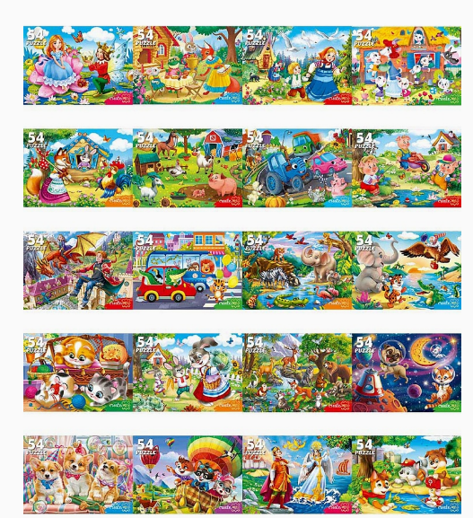 МИКС. ПАЗЛЫ 54 элемента. СКАЗОЧНЫЕ КАРТИНКИ (20 шт в шоубоксе) П54-5126