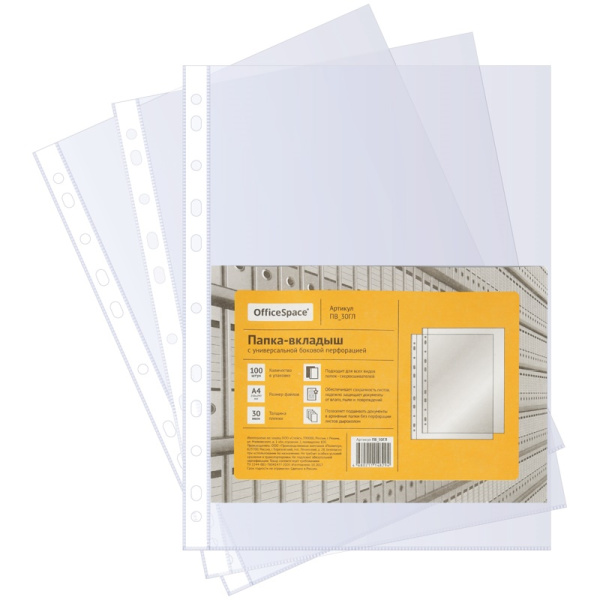 —Папка-вкладыш с перфорацией (файл) «OfficeSpace», А4, глянцевая (30 мкм.) арт. ПВ_30ГЛ