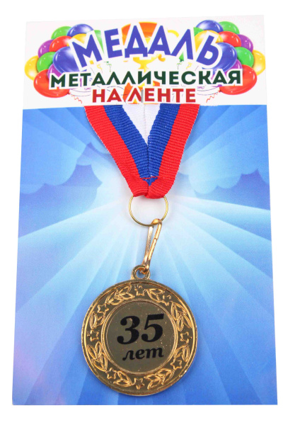 Медали именинникам на ленте металлические 35 лет D=4 см.