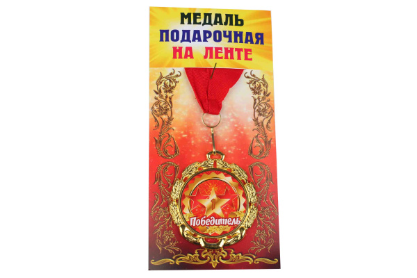 —Медаль подарочная на ленте металлическая Победитель D=6,5 см.