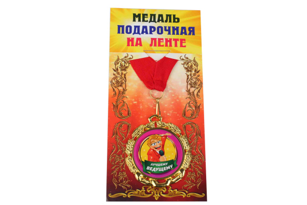 —Медаль подарочная на ленте металлическая Лучшему ведущему D=6,5 см.