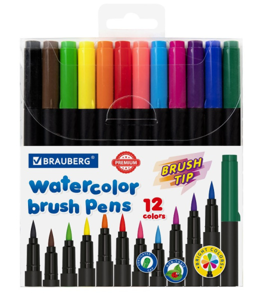 —Фломастеры Brauberg 'Premium' 12 цв., наконечник-кисть, вент. колпачек, 152195