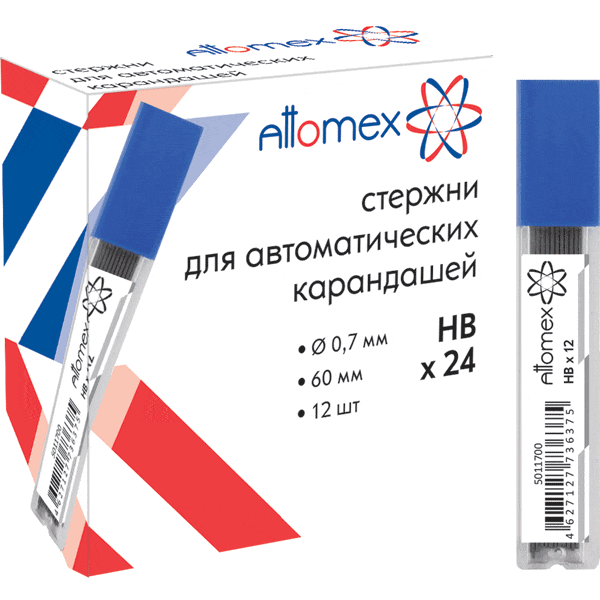 —Грифели для механических карандашей Attomex 0.7 мм, HB, 12 шт, 5011700