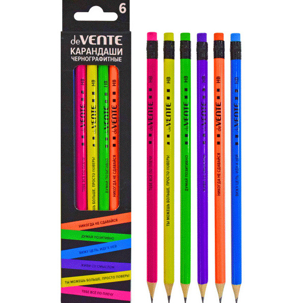 Карандаш чернографитный 'deVENTE.Motivation',HB, 2 мм диаметр грифеля,с ластиком, (6 шт;уп), 5030101