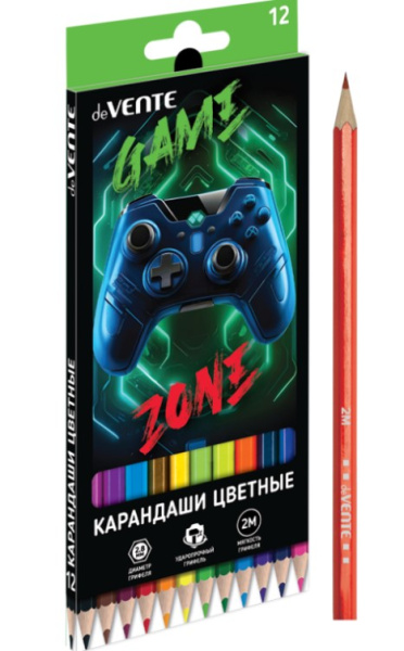 —Карандаши цветные 'deVENTE. Gamer' 12 цветов, 2М, диаметр грифеля 2,8 мм, шестигранные, 5022538