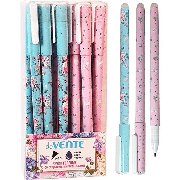 Ручка гелевая стираемая "deVENTE. Пиши-стирай. Flora" d=0,5 мм, синяя, 5051026