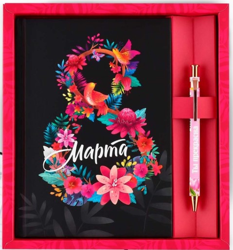 Подарочный набор '8 марта из цветов' ежедневник 80 л и ручка, 7370391