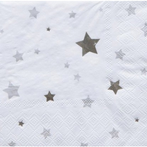 —Салфетки 'Белые. Серебрянные звезды' 20 шт;уп.