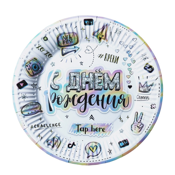 Набор тарелок ,'С Днём Рождения.Блогеры', d-18 см, (6 шт;уп), 701055