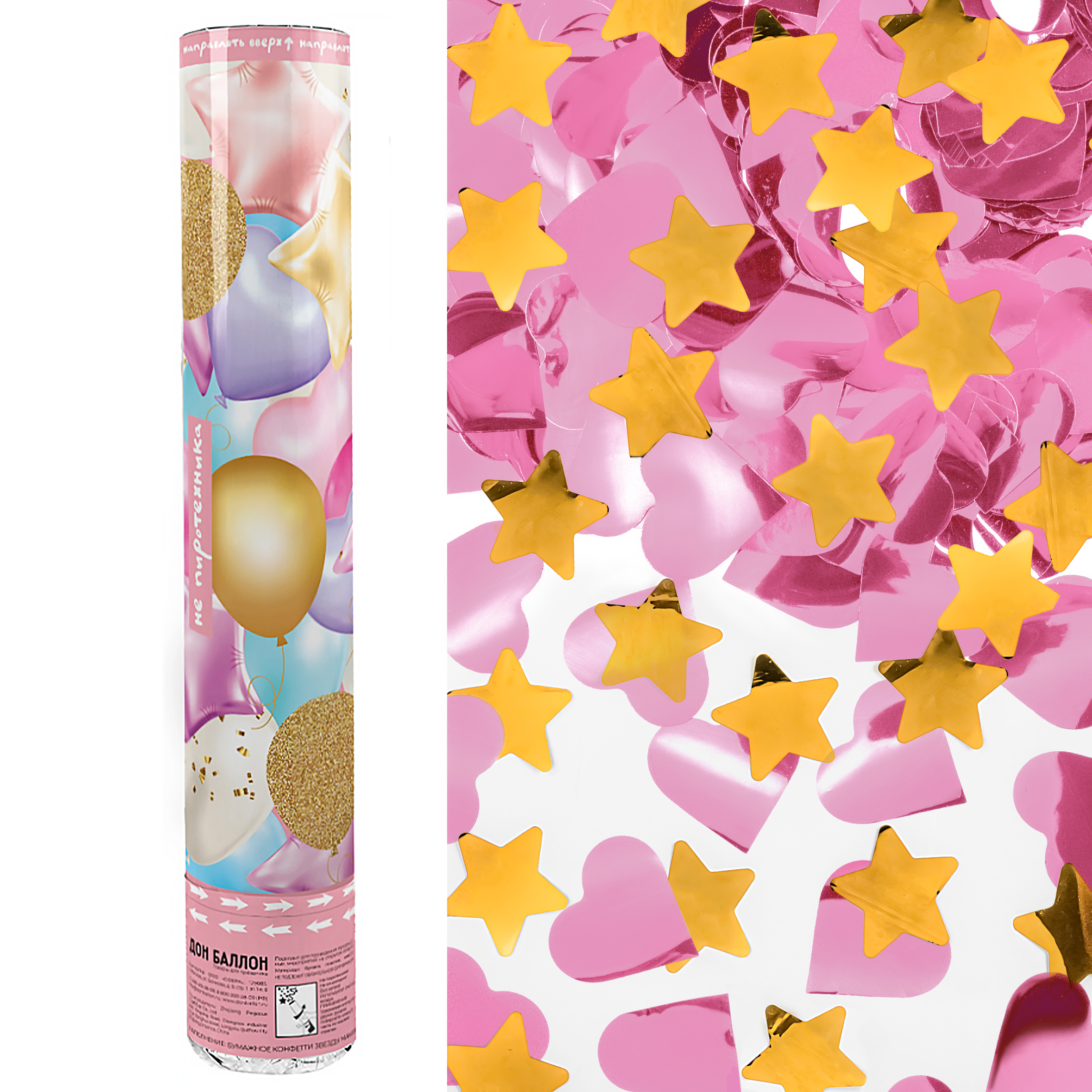 —Пневмохлопушка (12;30 см), Праздничные шарики, звезды и сердца, металлик.1 шт, 923015