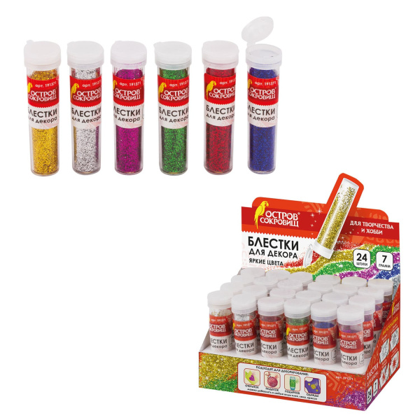 —Блестки (глиттер) ОСТРОВ СОКРОВИЩ, 7 грамм, цвета ассорти, в дисплее,191371