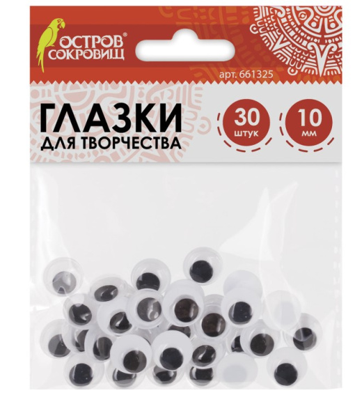 Глазки для творчества, вращающиеся, черно-белые, 10 мм, 30 шт., ОСТРОВ СОКРОВИЩ, 661325
