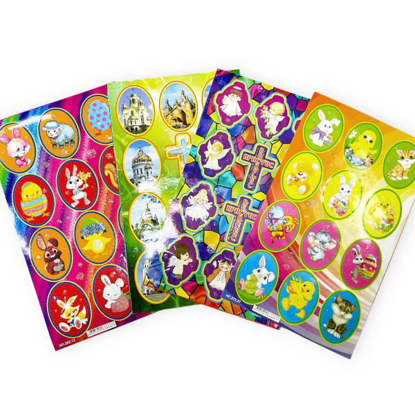 —Набор наклеек 'Пасха', Россия, А6, блестки,золото (20 шт;уп)