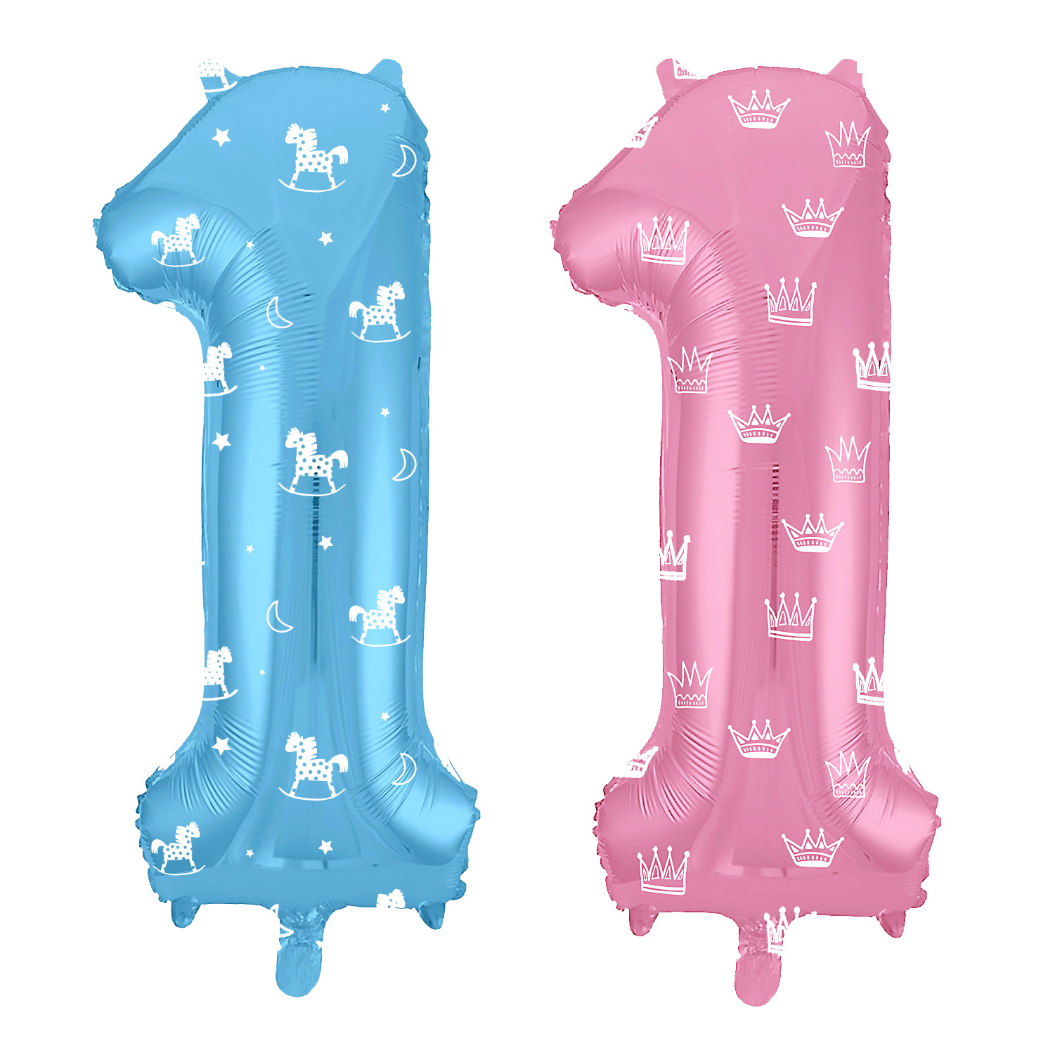 Шар фольга Agura Slim, цифра 1 с паттерном 'Короны розовый', 40', индивид. уп., европодвес, 754863