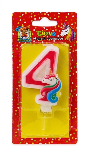 —Свеча для торта 'Цифра 4. Милый единорог', Миленд, картон. уп., европодвес, С-5938