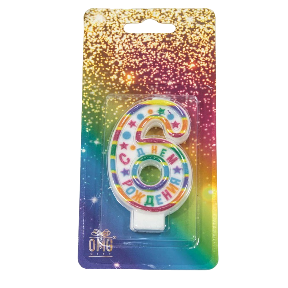 —Свеча для торта 'Цифра 6', С днём рождения, 6 см, картон. уп., европодвес, ОМ-20010-29;6