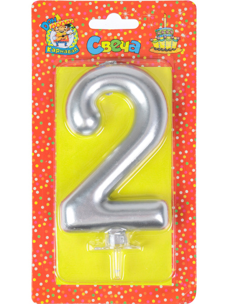 Свеча для торта 'Цифра 2. Серебряный металлик' Миленд, картон. уп., европодвес, С-1874