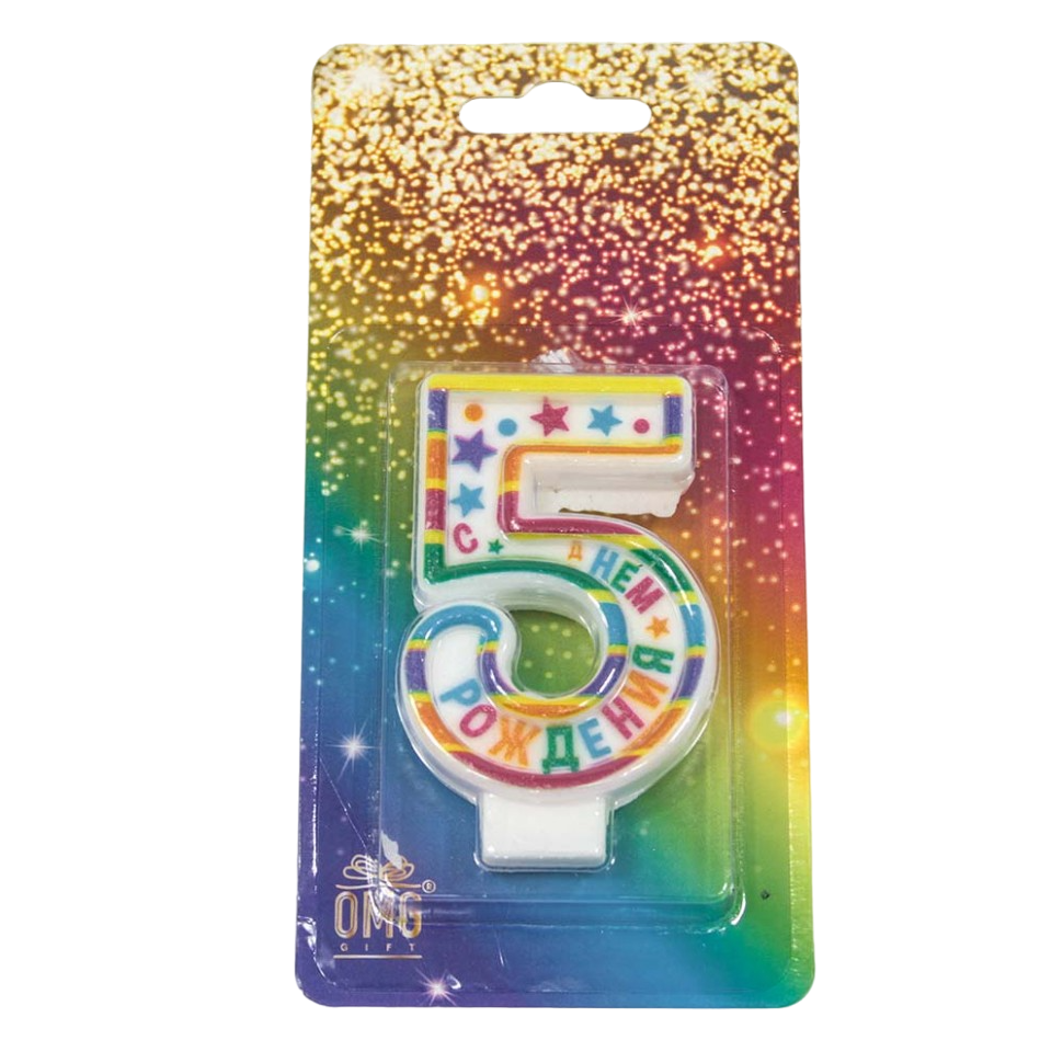 —Свеча для торта 'Цифра 5', С днём рождения, 6 см, картон. уп., европодвес, ОМ-20010-29;5
