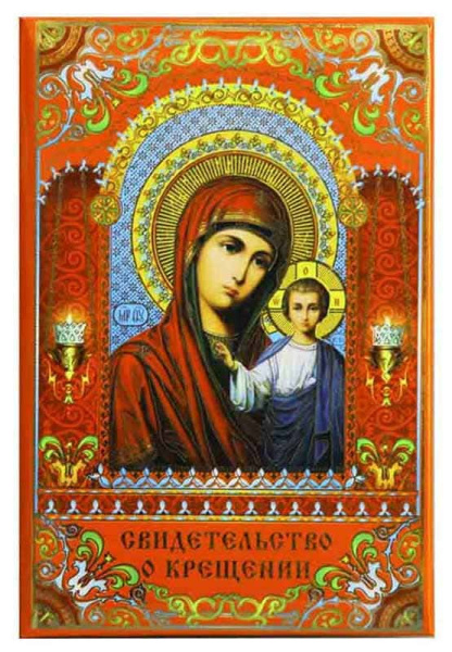 —Свидетельство о Крещении(пухлое), ламинированное, с рисунком "Дева Мария", СКК