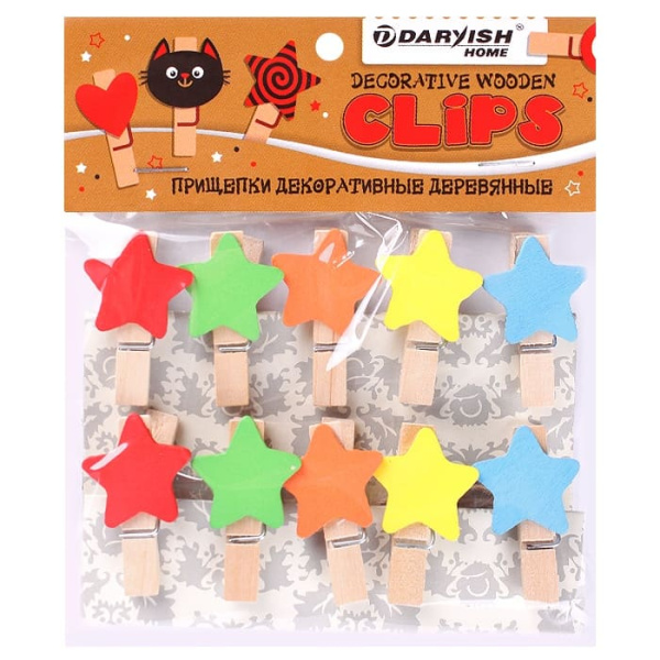 Прищепки декоративные Darvish 'Звёздочка', дерево, 10 шт.;уп., DV-H-1080