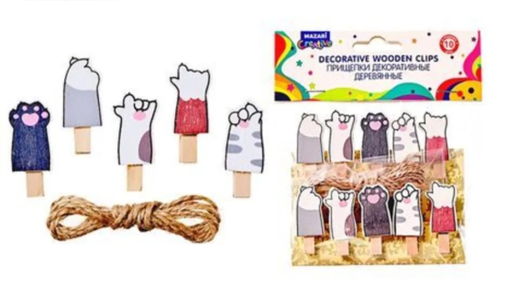 —Прищепки декоративные деревянные ЛАПКИ (10 шт;уп), размер 3.5 х 0.7 см, M-1537