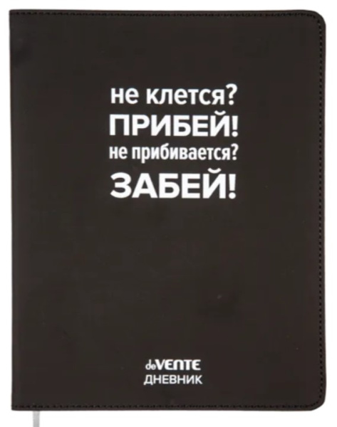 Дневник 'deVENTE. Не клеится. Прибей!' универсальный блок, 48 листов, белая бумага 80 г;м², печать в 1 краску, гибкая обложка из искусственной кожи, шелкография, отстрочка, 1 ляссе