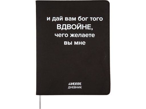 Дневник 'deVENTE. Дай вам бог вдвойне' универсальный блок, 48 листов, белая бумага 80 г;м², печать в 1 краску, гибкая обложка из искусственной кожи, шелкография, отстрочка, 1 ляссе