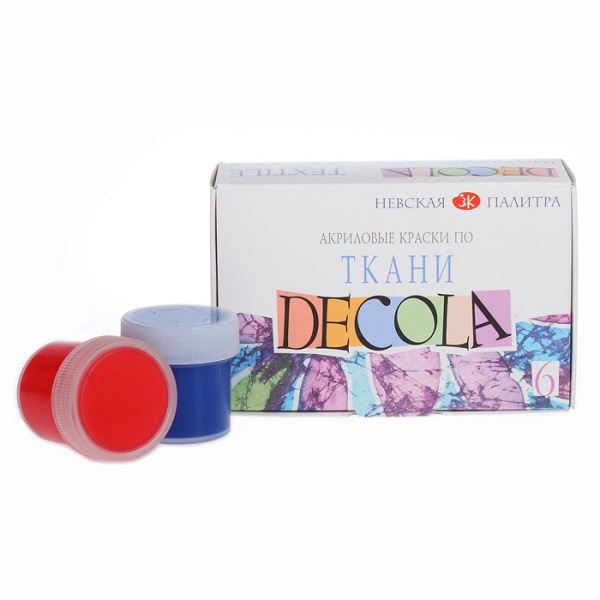 Акриловые краски по ткани 6 цв. Невская палитра 'Decola' по 20 мл., картон. уп., 4141025;191043
