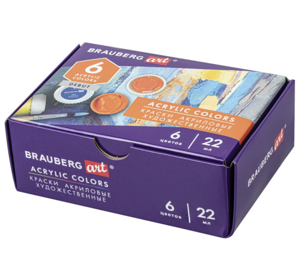 —Краски акриловые художественные 'BRAUBERG ART', 6 цветов, по 22 мл, 192297
