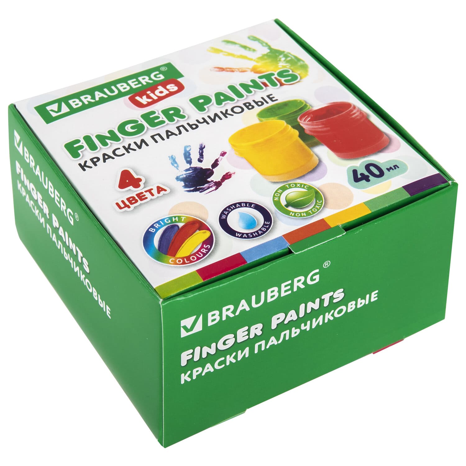 Краски пальчиковые BRAUBERG, 6 цветов, баночка, 40 мл, без кисти, 192279