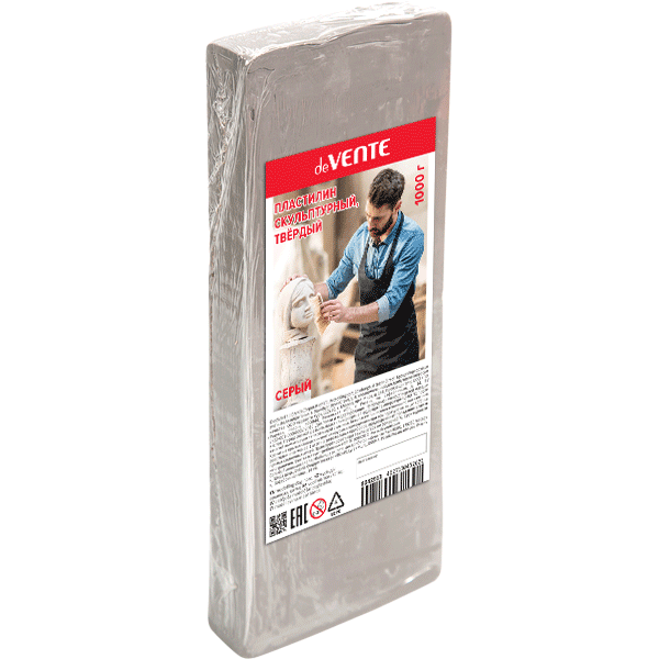 —Пластилин скульптурный 'deVENTE' серый, 1000 г, пленка, твердый, 8042913