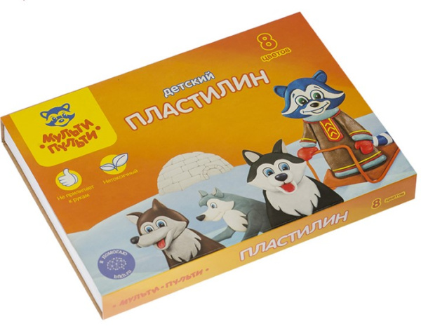 —Пластилин Мульти-Пульти 'Енот на Аляске' 8 цв, 120 г, со стеком, ДП_10233