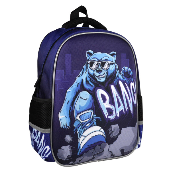 —Ранец школьный 'Крутой гризли', (27,5х37,5х14,5 см), полиэстер , ЭВА панель, 62993