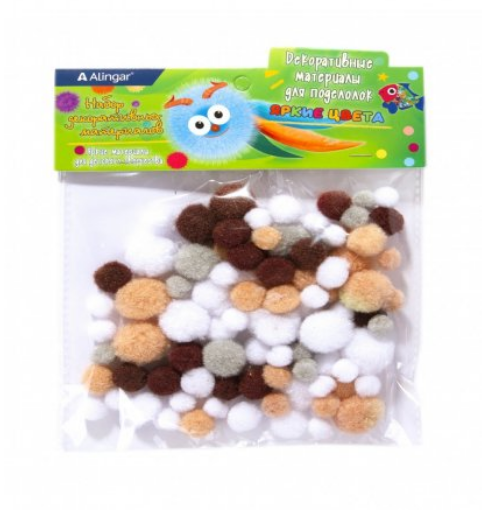 Декоративный материал Alingar, Коричнево-бежевые цвета, пушистые помпоны, 80 шт, AL9035