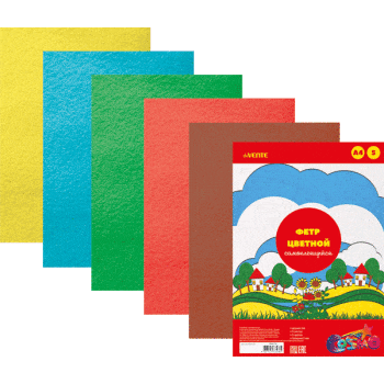—Фетр цветной самоклеящийся А4 DeVente 5л., 5цв., 2мм., европодвес, 8040758