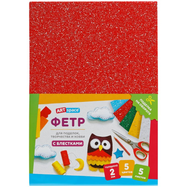 —Фетр ArtSpace, А4, 5л., 5цв., 2мм, с блестками