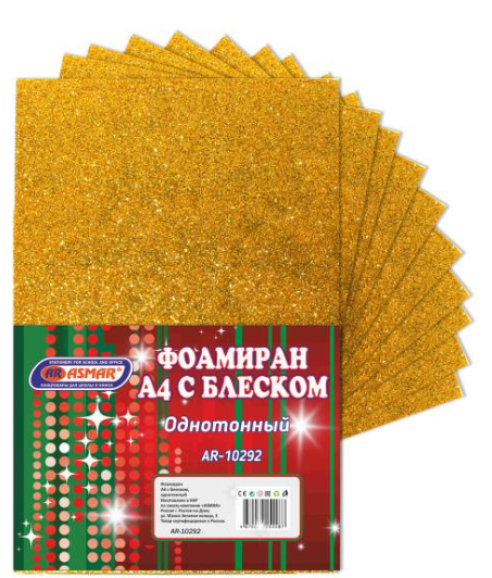 Фоамиран с блестками "ASMAR", А4 , однотонный, AR-10292