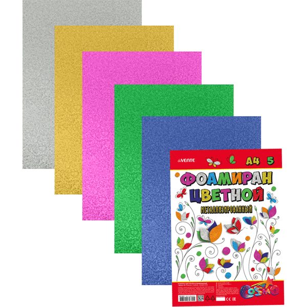 Фоамиран цветной металлизированный A4 'deVENTE' 5 цв, 5 л, толщина 2 мм. 8013807