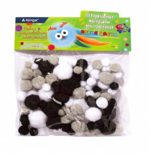 Декоративный материал Alingar, Черно-серые цвета, пушистые помпоны, 80 шт, AL9034
