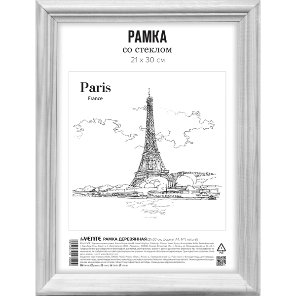 —Рамка из МДФ 'deVENTE' 21x30 см, формат A4, акрил стекло , белая, 9027148