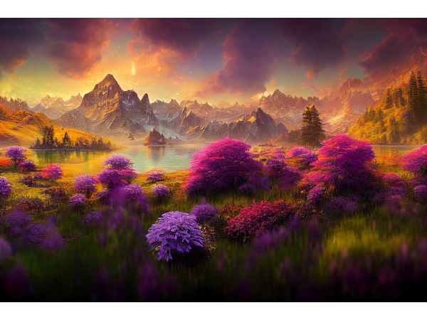 Картина по номерам 40х50 см, 'Волшебные поля в горах', Х-4616