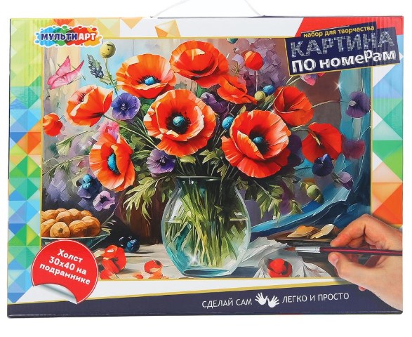 —Картина по номерам 30х40 см, Букет с маком, МУЛЬТИ АРТ, 392591