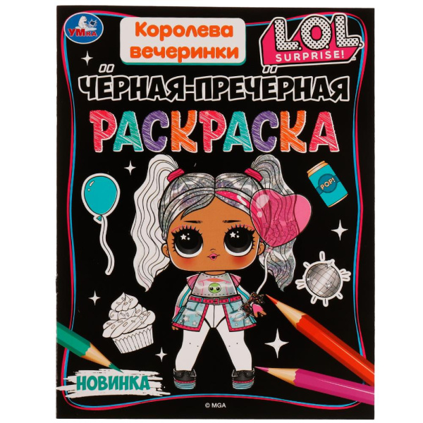 Королева вечеринки. Лол. Чёрная-пречёрная раскраска. 16 наклеек. 200х260 мм. 8 стр. Умка 331491